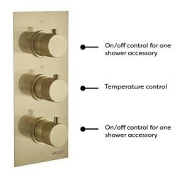 Arezzo Brushed Brass Round Thermostatic Shower Pack with Head + Handset (Oval Backplate)