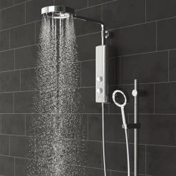 Choose the AQUAS AquaMax Electric Shower for a superior showering experience. The brand’s X Jet technology creates an all-directional spray pattern that provides a more powerful spray and greater body coverage. This design features an overhead shower and a separate handshower, with a simple diverter knob to switch between them. Two power settings allow you to maximise efficiency and energy savings according to the time of year.