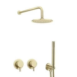 The Arezzo Brushed Brass Concealed Individual Diverter and Thermostatic Control Shower Valve Pack features a minimalist round design. This shower valve pack is perfect for installing in a concealed arrangement, pack comes supplied with a wall mounted fixed shower head and a matching round shower handset.