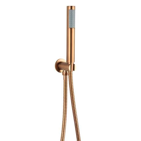 Supplied with a matching 200mm round fixed shower head with swivel joint and a round outlet elbow with parking bracket, flex & pencil handset. The solid brass valve body comes with a easy to clean contemporary rectangular face plate. The Arezzo brushed bronze finish adds warmth and uniqueness to your bathroom.
