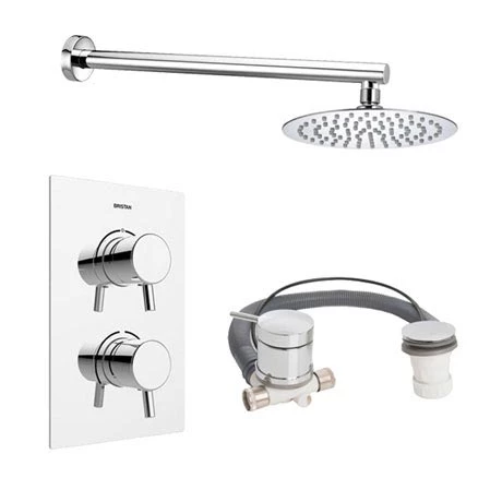 Enjoy flexible showering and bathing with the Prism Recessed Dual Control Shower Pack. Consisting of a Prism recessed dual control shower valve, slim line 200mm round fixed head, shower wall arm and bath filler with pop-up waste. It’s minimalistic and functional design offers an unrivalled shower and bath experience.