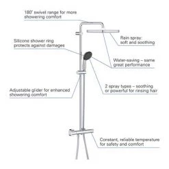 The Crosswater Central Matt Black Height Adjustable Thermostatic Shower is perfect if you have varying heights within your household. The riser rail is height adjustable from 740 to 1300mm. The easy to use bar valve features thermostatic controls to keep the water at a consistent temperature, ensuring there is no risk of scalding. The shower comprises of shower valve, adjustable riser and shower arm, 225mm round fixed head, handset, riser bracket and hose.