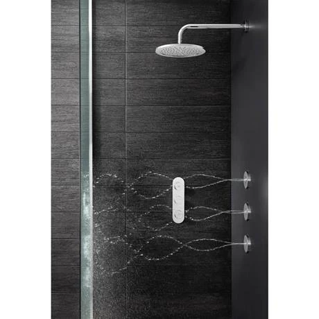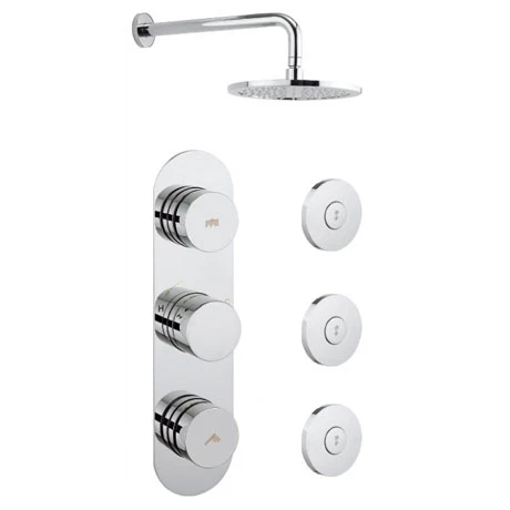 The chic looking Dial Central 2 Control Shower Valve with 3 Body Jets, Fixed Head and Arm features a brass body which has been engineered for maximum flow rate, the valve has 11 separate flow positions for complete showering flexibility whilst the built in thermostatic valve gives precise control of the temperature. This set includes 3 Dial rotating body jets and a 225mm fixed head and arm.