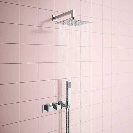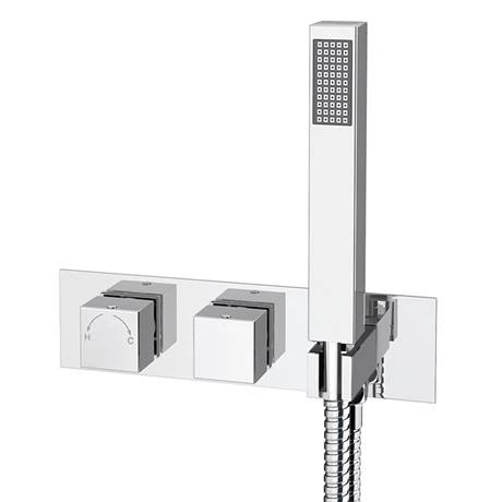 The Milan modern concealed thermostatic control shower valve has been fitted with a handy matching shower handset. You can also be rest assured the clever thermostatic shower valve will always keep your water at a safe temperature. Features minimalist square handles this modern style shower valve comes with a matching stainless steel ultra thin square shower head and is perfect for installing in a concealed arrangement. Valve diverts between two shower accessories.