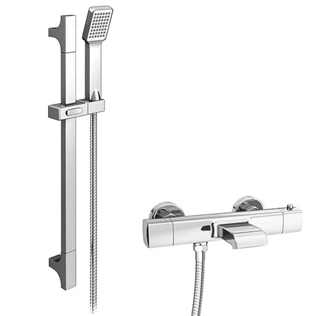 A modern soft curved wall mounted thermostatic bath shower mixer with slider rail kit, combining both style and ease of control. Supplied with shower flex and handset. The Montreal bath shower mixer tap comes with built in diverter to control function between tap and shower. For best performance we recommend a minimum operating pressure of 1 bar for best performance. For total flexibility, complete the look of your bathroom with a Modern shower kit.