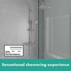 Hansgrohe Vernis Shape EcoSmart Showerpipe 230 Thermostatic Shower Mixer – Matt Black – 26097670